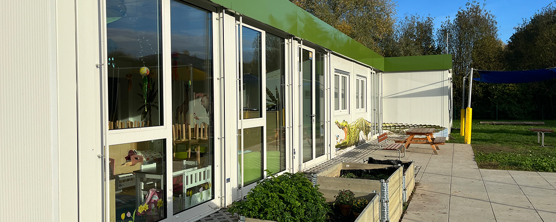 Mit zwei modernen Gruppenräumen in Containermodulen schafft der Kindergarten Platz für insgesamt zwei Gruppen. Beide Räume sind neu eingerichtet und bieten den Kindern eine freundliche, einladende Atmosphäre zum Spielen und Lernen.