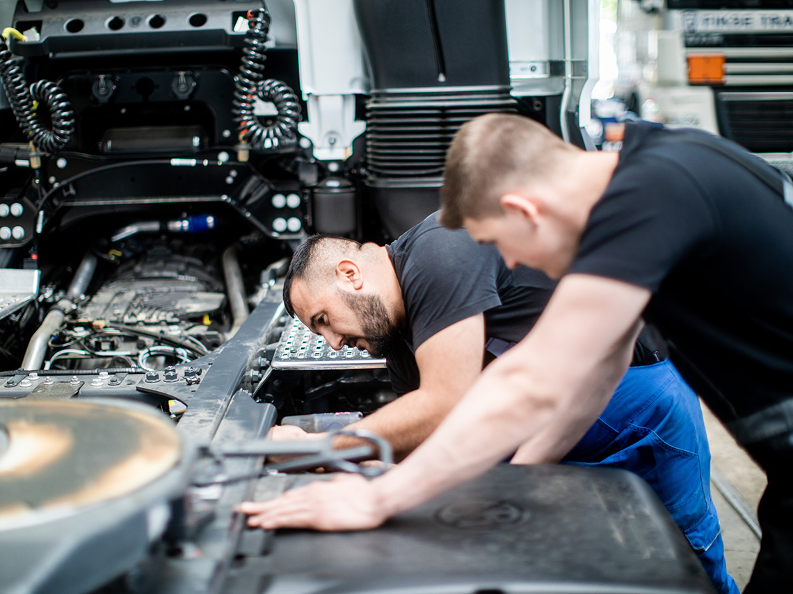 … und ist in ihrem Fortschritt dem Pkw immer voraus. Die moderne Technik macht Spaß und stellt immer neue Herausforderungen, ob Du nun Diagnosen durchführst, Fehler behebst oder nach individuellen Kundenwünschen supermoderne Zurüstungsteile an den Fahrzeugen verbaust. Und wenn es mal knifflig wird, kennt bestimmt einer Deiner Kollegen den richtigen Dreh. Denn Teamarbeit wird bei uns täglich aktiv gelebt.